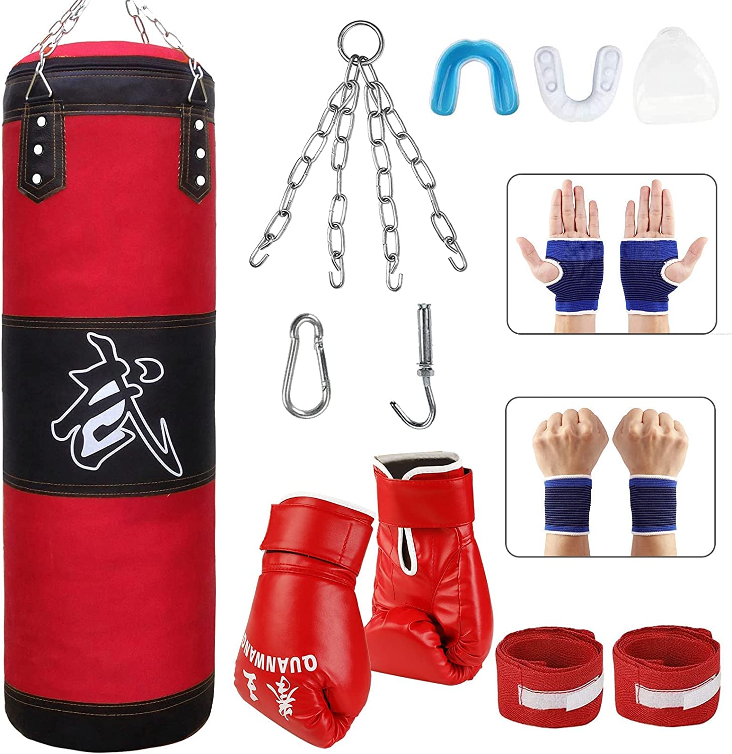 Sie müssen Ihren eigenen Füllstoff wie Sand, Sägemehl oder Textilfasern verwenden. So können Sie selbst entscheiden, wie schwer der Boxsack sein soll. - Hochwertiges Material: Der Boxsack besteht aus hochwertigem Oxford-Stoff, der für hohe Belastbarkeit und Langlebigkeit sorgt. Er ist außerdem wasserdicht, reißfest und leicht zu reinigen. - Einfache Montage: Der Boxsack kann einfach an der Decke oder Wand befestigt werden. Er ist mit einer starken Metall- und Lederkette ausgestattet, die eine lange Lebensdauer gewährleistet. - Geeignet für alle Altersgruppen: Dieser Punchsack ist für Erwachsene und Kinder geeignet. Er ist einfach zu bedienen und eignet sich hervorragend zum Training von Hand-Auge-Koordination, Kraft und Geschicklichkeit. - ZERUIDM Boxsack Set Heavy Duty Punchingsäcke UNGEFÜLLT, Hängende Punchingsäcke Boxing Bag für Erwachsene Kinder: Dieses Boxsack Set enthält einen leeren Punchingsack und eine starke Metall- und Lederkette, die eine sichere und stabile Befestigung an der Decke oder Wand gewährleistet. Es ist aus hochwertigem Oxford-Stoff hergestellt, der für hohe Belastbarkeit und Langlebigkeit sorgt. Es ist wasserdicht, reißfest und einfach zu reinigen. Der Boxsack eignet sich f.
